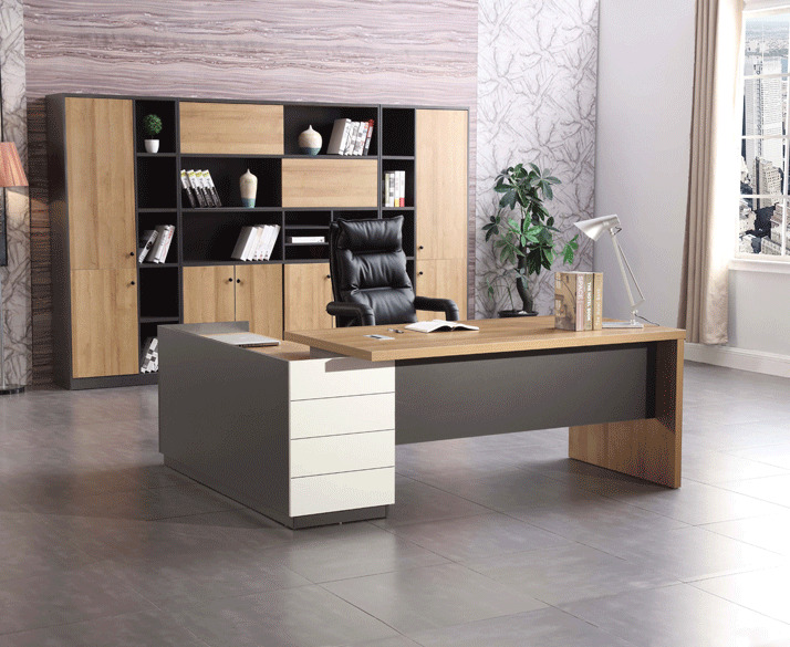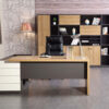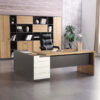 Bàn giám đốc Beta được được thiết kế theo phong cách hiện đai, lấy tông màu gỗ tự nhiên làm màu chủ đạo của bàn kết hợp với màu ghi sáng tạo sự sang trọng cho bàn làm việc của giám đốc. Ngoài ra phần mặt tiền của bàn được trang trí màu trắng kết hợp với các đường nét thanh nhôm tạo viền cách điệu cho sản phẩm.