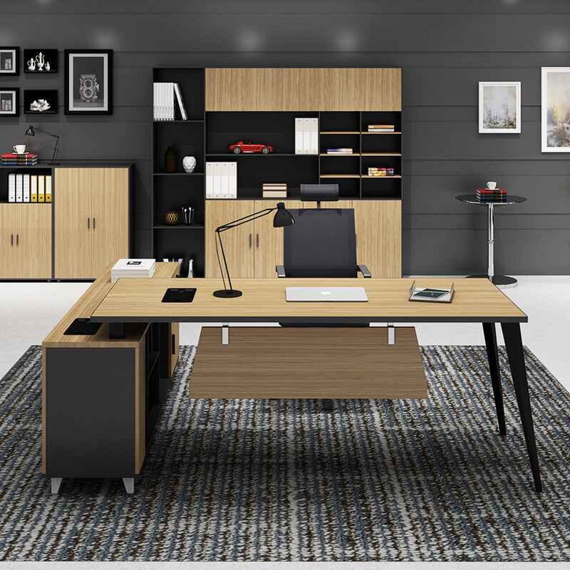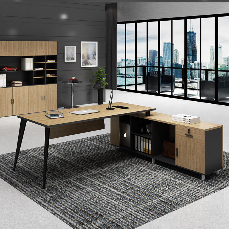 Bàn giám đốc hiện đại IOTA được thiết kế theo phong cánh hiện đại lấy cảm hứng từ sự đơn giản, cách tân trong thiết kế mới. Bàn kết hợp giữa phần chân sắt nhập khẩu được thiết kế tinh tế với phần gỗ công nghiệp MFC hiện đại thừa hưởng đầy đủ tính ưu việt của gỗ công nghiệp. Phần tủ phụ được thiết kế với đầy đủ công năng gồm 3 ngăn kéo, cánh tủ mở và 1 khoang để CPU máy tính. Phần mặt bàn được thiết kế nắp đi dây điện bằng hợp kim nhôm tạo sự sang trọng.