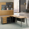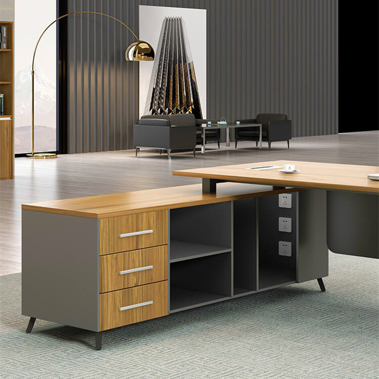Bàn giám đốc hiện đại IOTA được thiết kế theo phong cánh hiện đại lấy cảm hứng từ sự đơn giản, cách tân trong thiết kế mới. Bàn kết hợp giữa phần chân sắt nhập khẩu được thiết kế tinh tế với phần gỗ công nghiệp MFC hiện đại thừa hưởng đầy đủ tính ưu việt của gỗ công nghiệp. Phần tủ phụ được thiết kế với đầy đủ công năng gồm 3 ngăn kéo, cánh tủ mở và 1 khoang để CPU máy tính. Phần mặt bàn được thiết kế nắp đi dây điện bằng hợp kim nhôm tạo sự sang trọng.