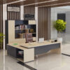 Bàn giám đốc hiện đại Pesi được thiết kế theo phong cánh hiện đại lấy cảm hứng từ sự đơn giản, cách tân trong thiết kế mới. Bàn kết hợp giữa phần chân sắt nhập khẩu được thiết kế tinh tế với phần gỗ công nghiệp MFC hiện đại thừa hưởng đầy đủ tính ưu việt của gỗ công nghiệp. Phần tủ phụ được thiết kế với đầy đủ công năng gồm 3 ngăn kéo, cánh tủ mở và 1 khoang để CPU máy tính. Phần mặt bàn được thiết kế nắp đi dây điện bằng hợp kim nhôm tạo sự sang trọng.