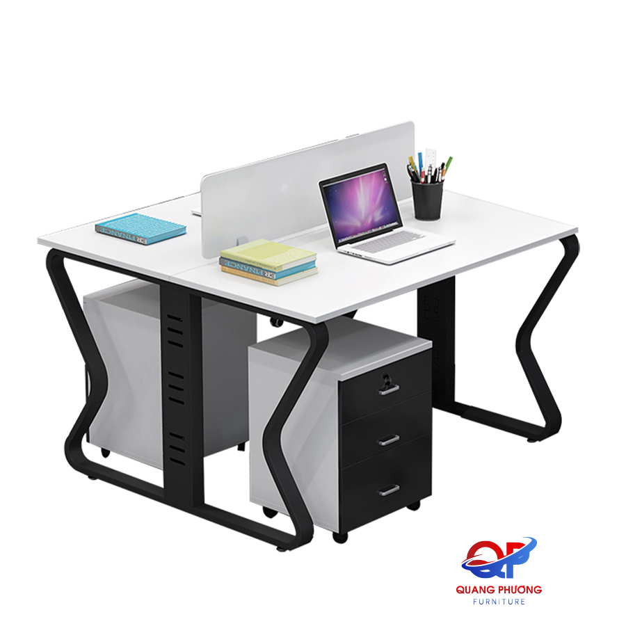 Cụm bàn kết hợp với các mẫu ghế làm việc văn phòng tiện ích như: ghế xoay, ghế chân quỳ tiện ích hoặc hộc tủ di động giúp không gian văn phòng trở nên trẻ trung, linh động hơn.