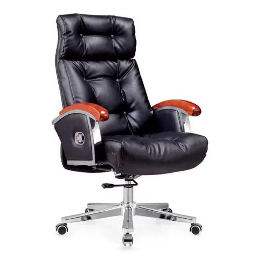 Loại da được sử dụng là da xịn có độ mềm mịn, độ dai và bền cao. Khi sử dụng không lo bị nổ, hạn chế bị rách. Thiết kế ghế chịu lực cao, chịu tác động lớn. Bên cạnh đó, tay vịn ghế được làm từ gỗ giúp cách điệu và tăng sự sang trọng cho các sếp. Khung chân được mạ Crom sáng bóng tạo chất thẩm mỹ chuẩn và phong cách bắt mắt.