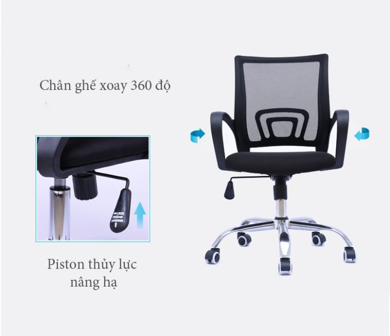 - Thiết kế thông minh tiện ích: chất liệu vải lưới ở phần lưng ghế kết hợp phần chân xoay 360 độ tạo nên một tổng thể rất thanh thoát, hiện đại và sang trọng, phù hợp nhiều không gian văn phòng khác nhau.
