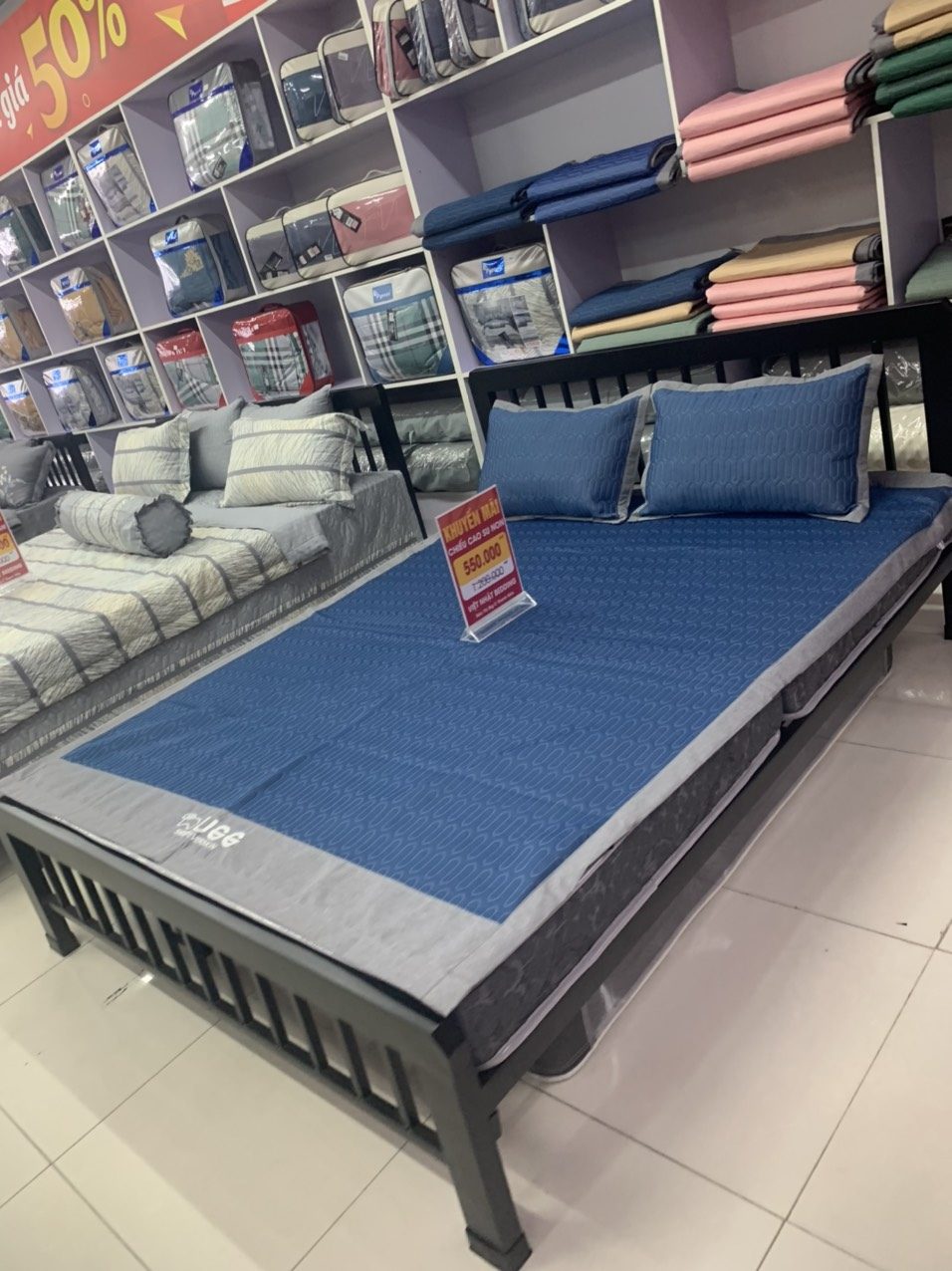 Giường sắt đơn kích thước : rộng 1m4 x dài 1m9 x cao 35cm giá là 2.400.000 ( Dát giường gồm 2 tấm ghép lại)