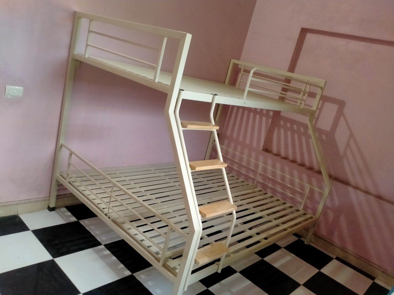 Hình ảnh thực tế của mẫu Giường tầng sắt lệch tầng 1m6 do NAVI lắp đặt