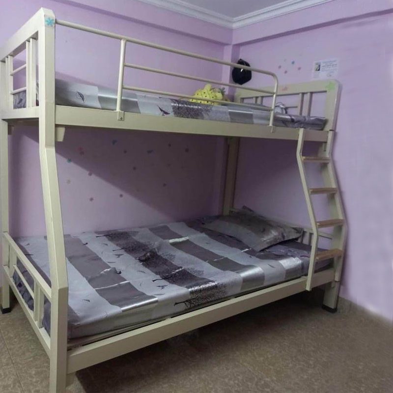 - Giường sắt lệch tầng 1m2 do lệch tầng nên kiểu thang leo rất tối ưu, leo tầng 2 vô cùng dễ dàng và an toàn, thích hợp cho phòng ngủ, gia đình hoặc homestay, đa dạng kích thước sẽ làm cho không gian của bạn sẽ gọn gàng và tiện nghi hơn. Thích hợp cho nhà trọ, khu ký túc xá, khu tập thể công nhân, trường du học và xuất khẩu lao động, sử dụng cho phòng trọ mang lại không gian gọn gàng tiện dụng.