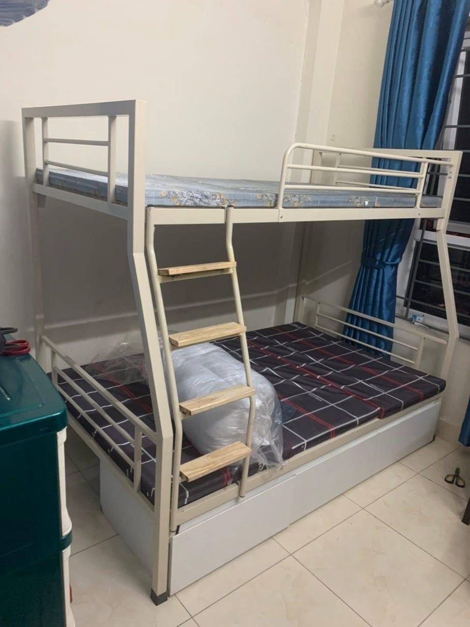Giường sắt lệch tầng 1m2 thang leo rất tối ưu, leo tầng 2 vô cùng dễ dàng và an toàn, thích hợp cho phòng ngủ, gia đình hoặc homestay, đa dạng kích thước sẽ làm cho không gian của bạn sẽ gọn gàng và tiện nghi hơn. Thích hợp cho nhà trọ, khu ký túc xá, khu tập thể công nhân, trường du học và xuất khẩu lao động, sử dụng cho phòng trọ mang lại không gian gọn gàng tiện dụng.