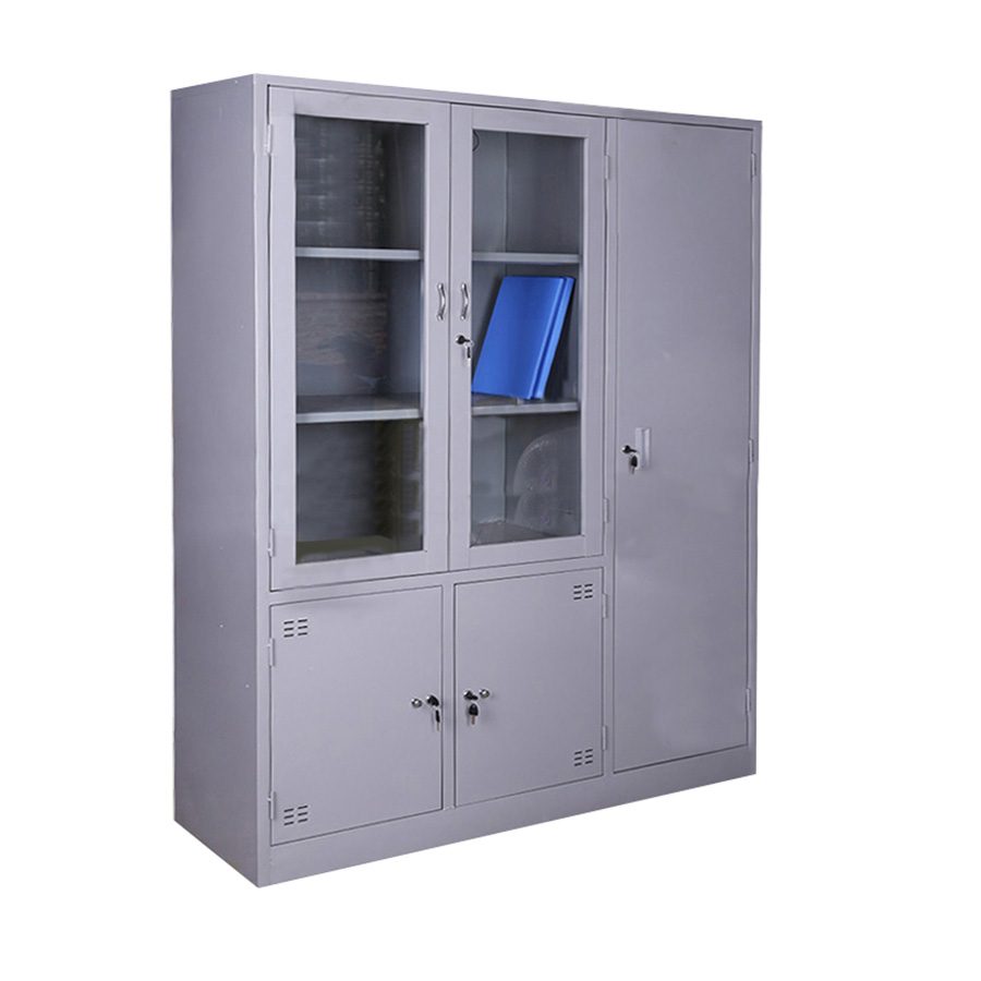 Tủ hồ sơ sắt đựng tài liệu được sử dụng để đựng đồ cá nhân, hồ sơ, tài liệu, tại các văn phòng, cơ quan, nhà hàng, xí nghiệp,…Chiếc tủ được làm bằng thép cao cấp phun sơn tĩnh điện chống trầy xước. Tủ gồm 3 khoang, với 1 khoang cánh kính mở và 2 đợt cố định,khoang bên dưới là 2 cánh sắt mở + 1 khoang cánh mở dài có đợt cố định