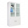 Tủ sắt 2 cánh kính màu trắng được làm bằng thép sơn tĩnh điện màu ghi trắng sáng bền đẹp sang trọng và an toàn khi sử dụng. Tủ có 2 đợt cánh kính chia khoang làm 3 ngăn, khoang dưới chia làm 2 ngăn có 2 cánh sắt mở