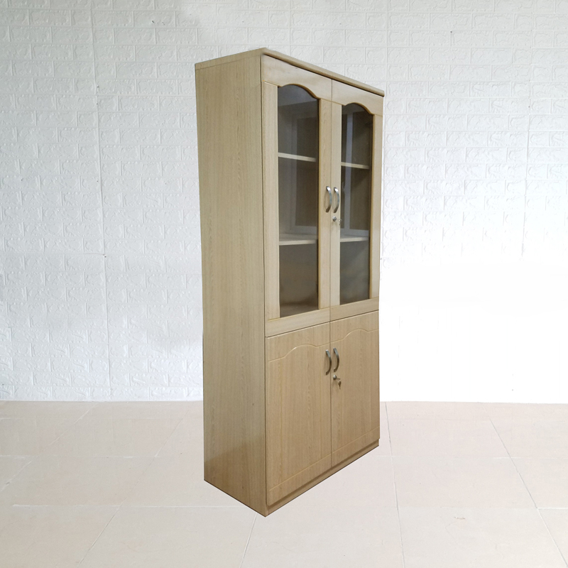 - Chất liệu tủ tài liệu 2 buồng mái cong là gỗ MDF phủ sơn PU, kính