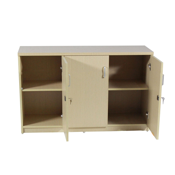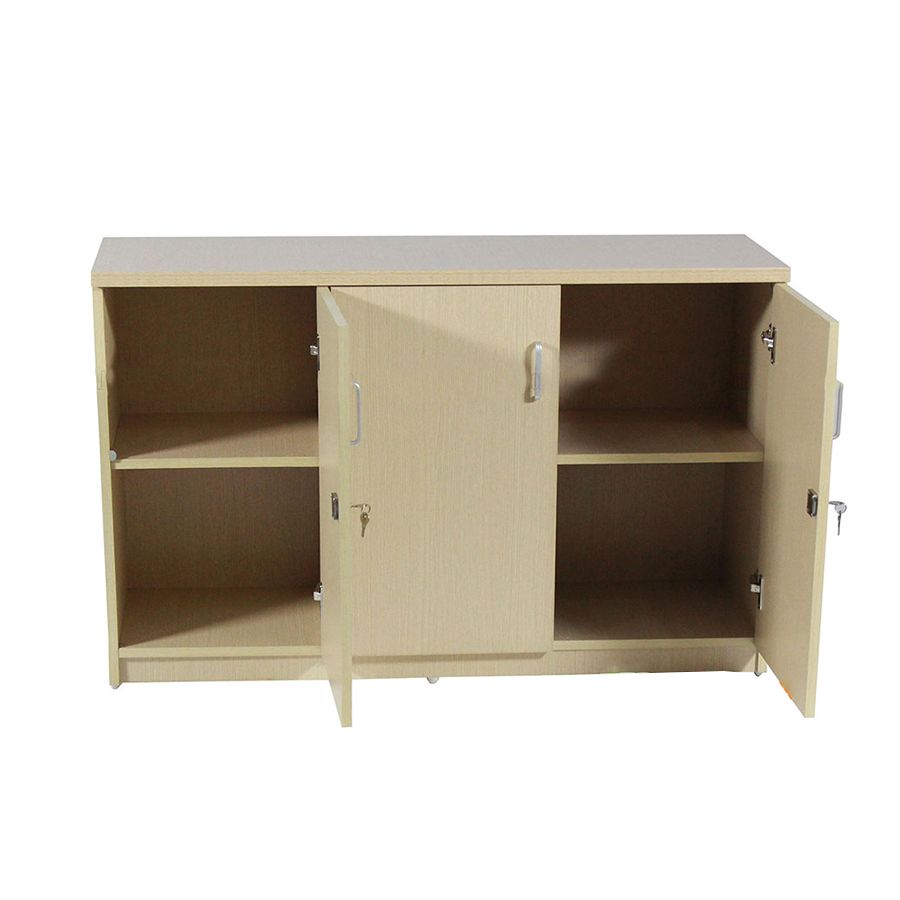 Thiết kế tủ tiện lợi với chất liệu gỗ được phủ Melamine chống ẩm, chống xước, chống mọt mối. Tủ được thiết kế tiện ích với 2 khoang và 3 cánh tủ có khóa tiện ích. Khoang phải rộng hơn có thể chứa được nhiều tài liệu, đồ vật. Khoang trái nhỏ gọn có thể dùng để phân loại các tài liệu khác. Tủ có gắn đế nhựa giúp quá trình di chuyển không gây xước sàn, hỏng tủ, đảm bảo độ thông thoáng cho tủ khi sử dụng.